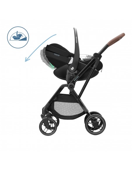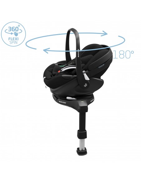 Maxi-Cosi Pebble 360 Pro is part of the 360 Pro Family range, featuring one-hand rotation and SlideTech™ – the revolutionary sliding car seat technology that makes every day easier. No backache, head bangs or struggles; simply lock, slide, spin and go! The Pebble 360 Pro delivers maximum sleep comfort for your baby, from birth to 15 months. The seat features three recline positions (including a superior full lie-flat position) which can be used in the car and attached on a pushchair. The lie-flat position offers a more natural sleeping position for babies, as it helps keep their airways open and allows them to breathe more easily. When used with the rotating FamilyFix 360 Pro slide out base (sold separately), you can effortlessly rotate and slide your child toward you. The Easy-in harness adds even more convenience, allowing you to fasten your baby in with minimum fuss. On the road, Maxi-Cosi’s integrated G-CELL Side Impact Protection provides superior safety.