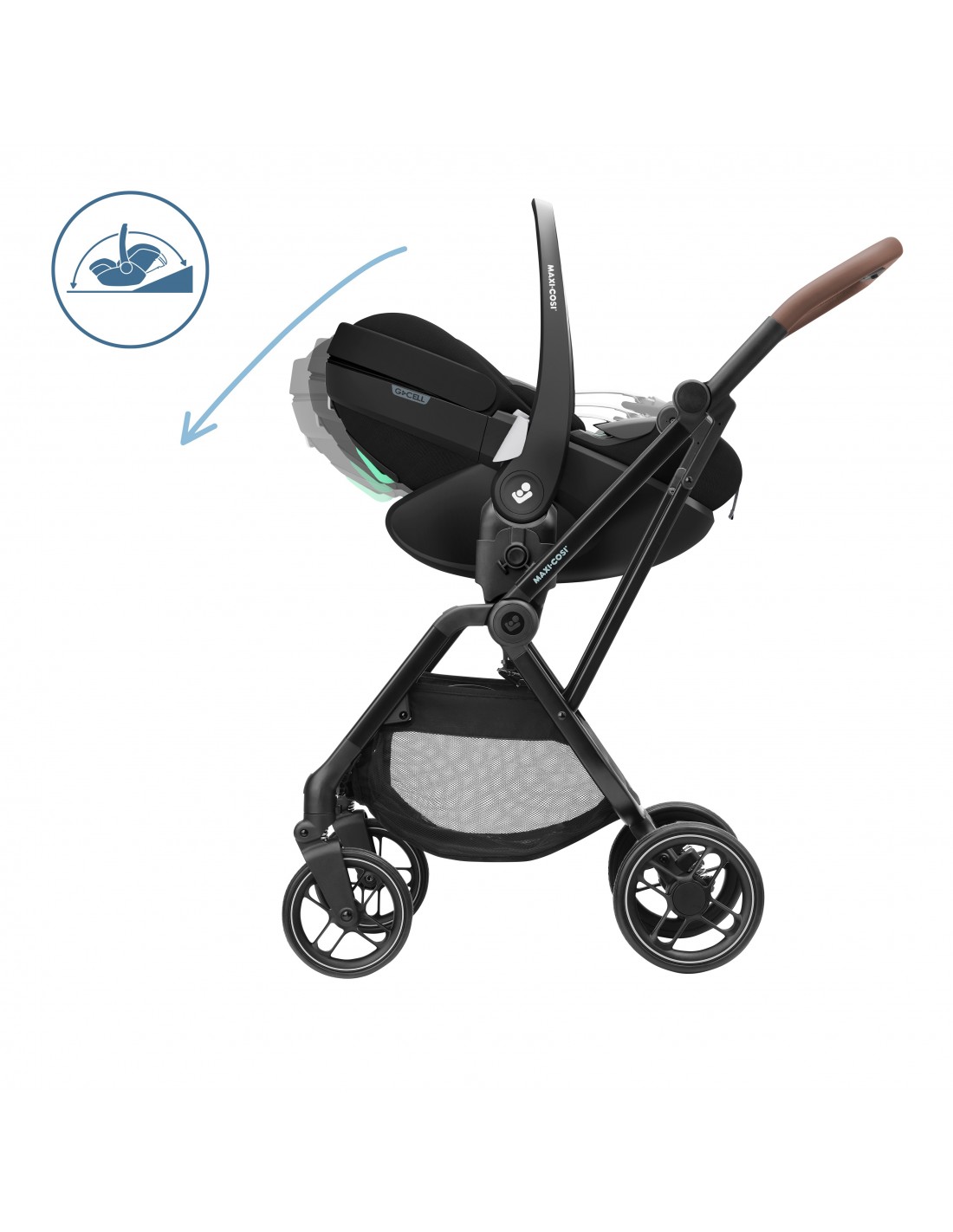 Pebble 360 Pro reclines into a full lie-flat position in all modes – in the car, attached to a pushchair and used with or without the FamilyFix 360 Pro base.