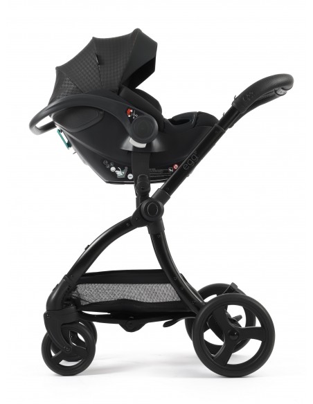 The egg® Shell can also be set up in the travel system configuration (Multi Car Seat Adaptors required) and cleverly uses the multi-position handle of the car seat to lock it in position.