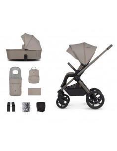 3in1 includes - chassis, seat unit, carrycot, Tiago car seat, Tiago 360 IsoFix base, changing bag, footmuff, raincover, changing mat, moquito net & car seat adaptors.