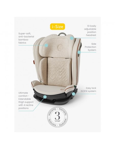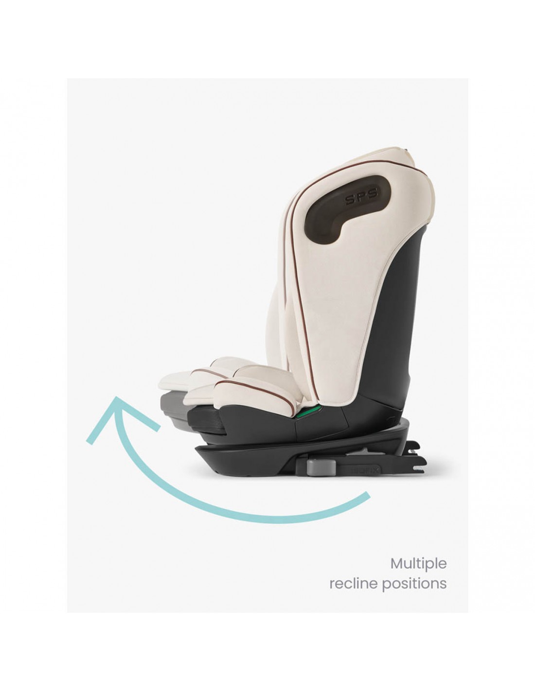 Discover i-Size high-back booster seat offers comfort, safety and longevity from 4 to 12 years of age. The ergonomic seat features an adjustable headrest with 10 positions, as well as a new 4-position recline and adjustable thigh support – perfect for growing legs.