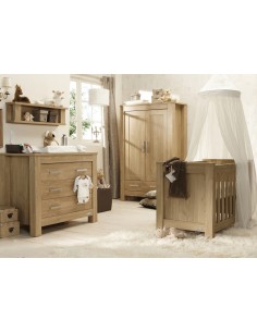 The BabyStyle Bordeaux Oatmeal 3‑Piece Set combines timeless elegance with nursery practicality. Crafted in a warm oatmeal finish with subtle wood-effect detailing and refined hardware, the set includes a cot bed, dresser with detachable changing top, and a spacious wardrobe—designed to adapt with your child, from newborn through toddler years.