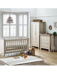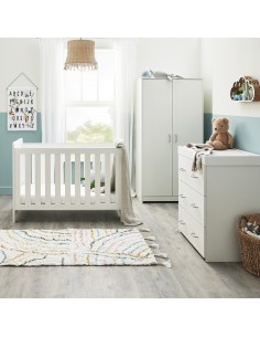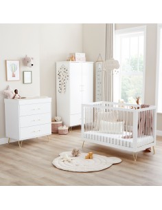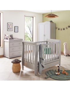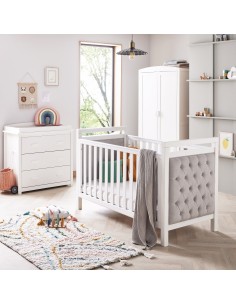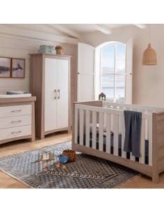 The Mona collection elegantly combines contemporary Scandi style with a timeless woodgrain finish and this Mona 2-piece room set is the perfect addition to any nursery. Featuring the Mona cot bed and Mona changing unit, it is designed to provide parents with a durable, functional, and stylish furniture option for their little ones.