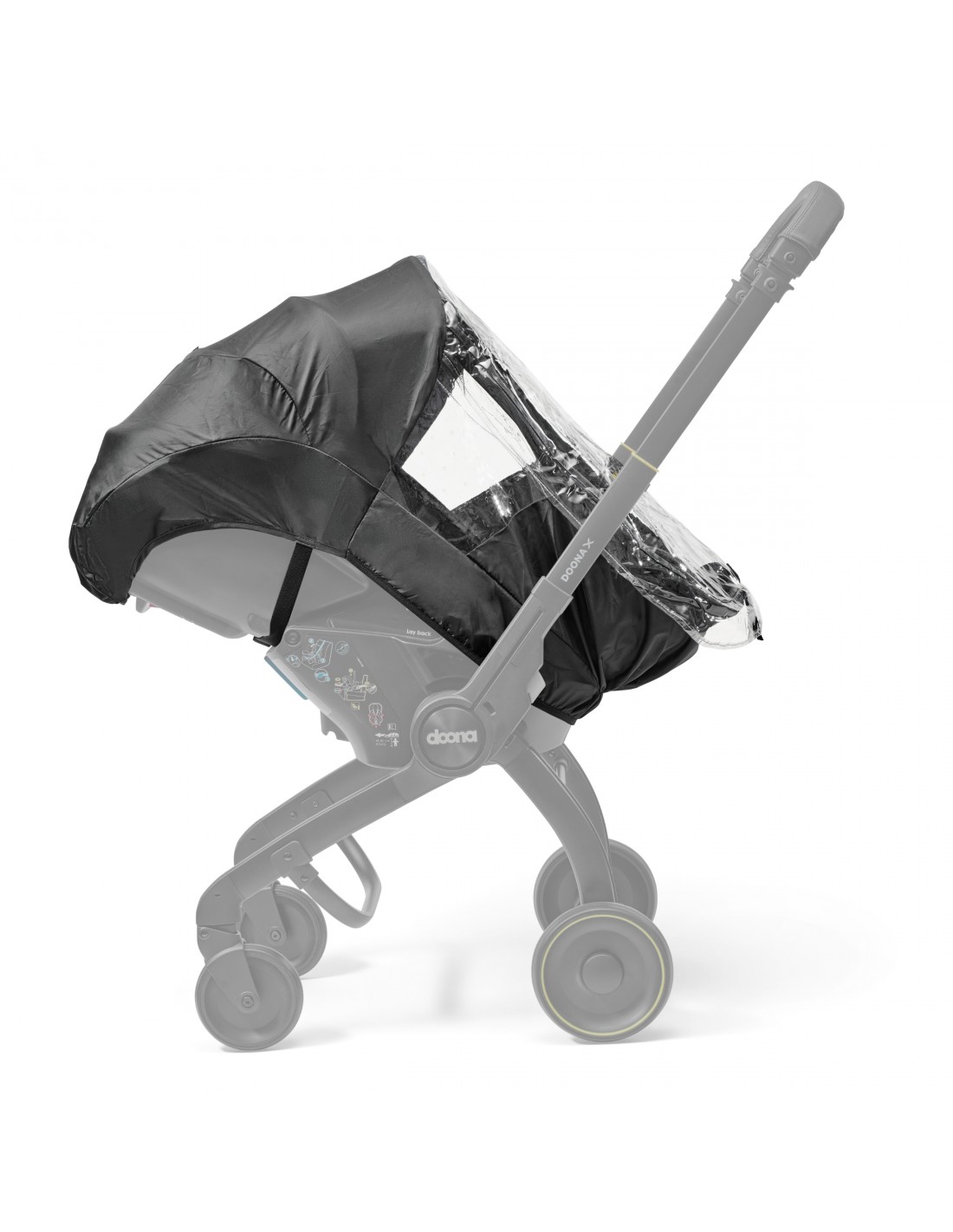 The Doona™ Rain Cover is made of baby-safe materials. It has side ventilation holes to ensure that your baby is always comfortable, safe, and dry. The wide zipper opening provides easy access to your baby. With the simple Doona snap-on connectors, attaching and removing the rain cover is quick and easy. The Rain Cover has been designed to perfectly accommodate the Doona X, ensuring seamless functionality across all recline positions. A compact carry bag for easy storage when not in use is included.