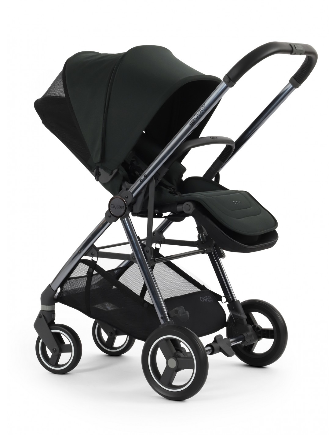 Stroller includes: chassis with wheels, complete seat unit, bumper bar and rain cover. Suitable from birth to 22kg. Compatible with the Oyster Carrycot.