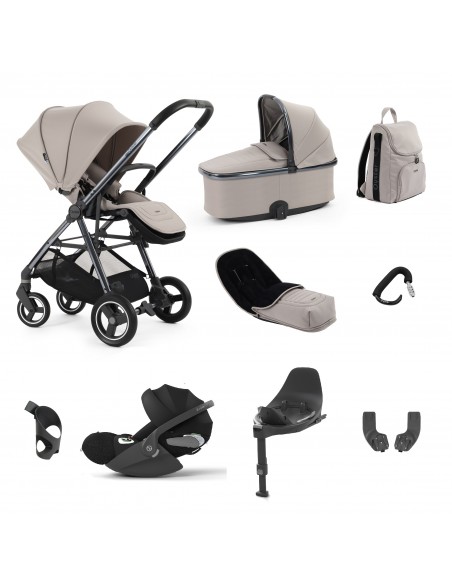 Includes - chassis with wheels, complete seat unit, bumper bar, rain cover, Oyster carrycot (complete with mattress and raincover), changing rucksack, footmuff, bottle holder, stroller lock, Cybex Cloud T car seat, Cybex Base T IsoFix Base & car seat adaptors.