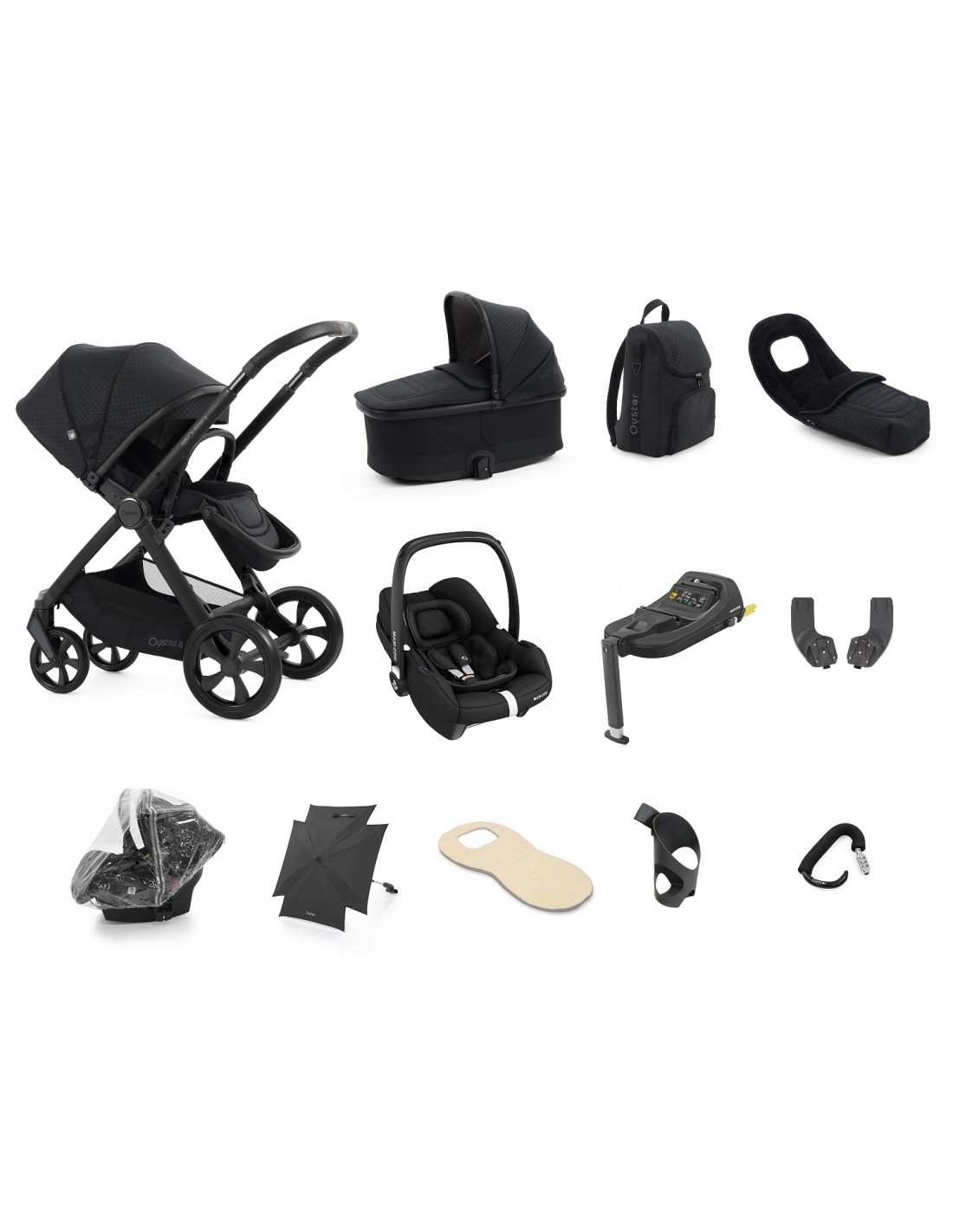 BabyStyle Oyster4 Ultimate 12 Piece Bundle with Maxi-Cosi CabrioFix iSize Car Seat - Raven