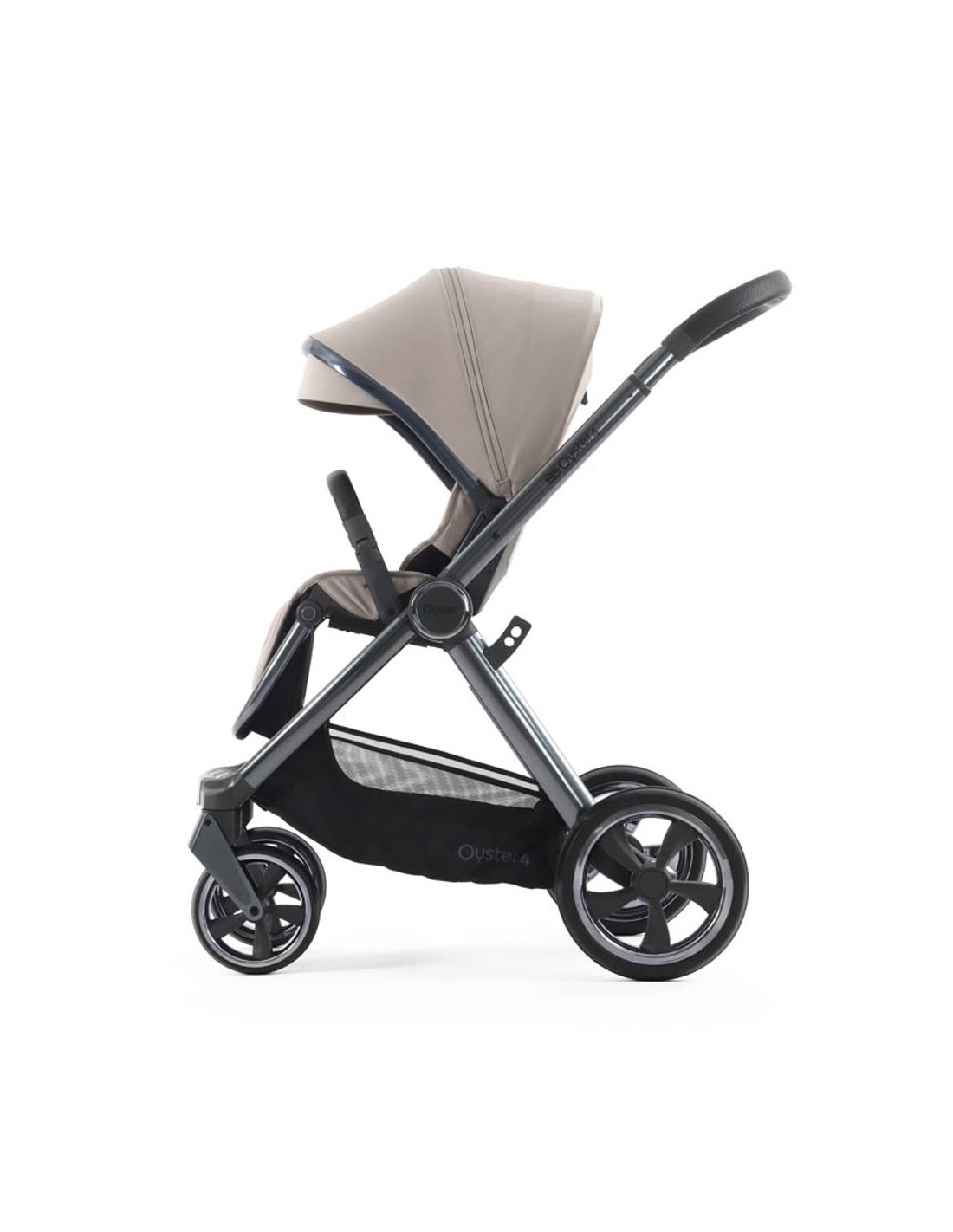 A one-hand reclining seat with lie-flat newborn option, adjustable calf rest, gated bumper bar, magnetic buckle, height adjustable headrest and harness, flip-flop friendly brake and 5kg shopping basket redefine ease. The Oyster4 also has an easy-to-adjust handle with a height range of 101-113cm.