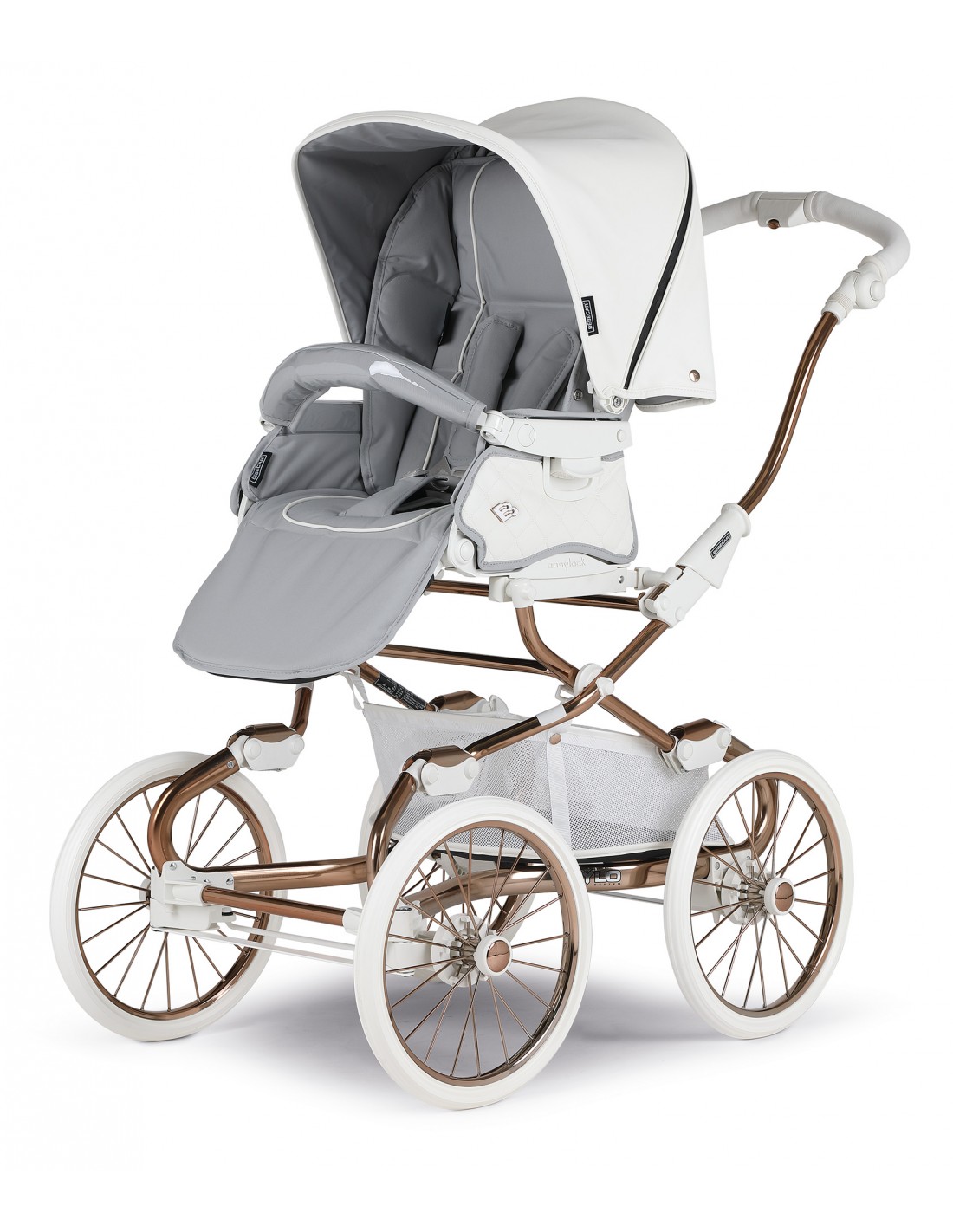 Steerable wheels – The Stylo Class EL has front steering wheels that make it much easier to manoeuvre when pushing the pram. These wheels can also be locked using a foot pedal at the rear of the pram.