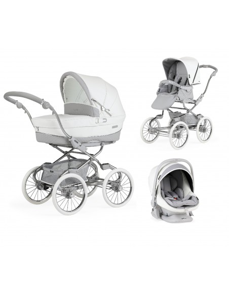 The Stylo Class EL combination includes the chassis, carrycot, a lie-flat and reversible pushchair seat, and a raincover that fits the carrycot and seat. For a complete travel system, the Bebecar EasyMaxi infant car seat is available in matching fabrics and will fit the chassis without the need for adaptors.