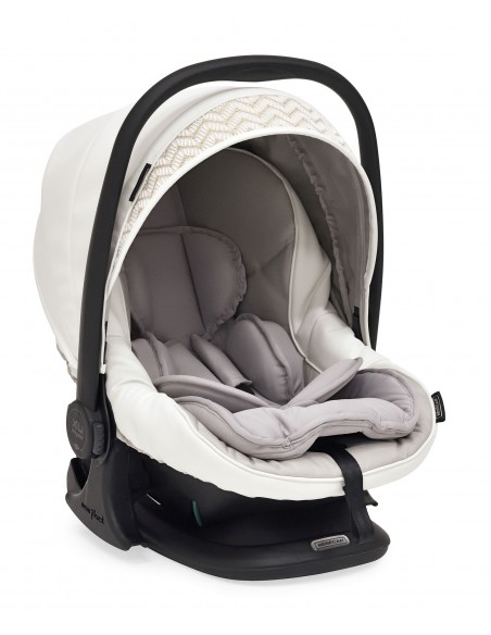 The Stylo Class EL combination includes the chassis, carrycot, a lie-flat and reversible pushchair seat, and a raincover that fits the carrycot and seat. For a complete travel system, the Bebecar EasyMaxi infant car seat is available in matching fabrics and will fit the chassis without the need for adaptors.