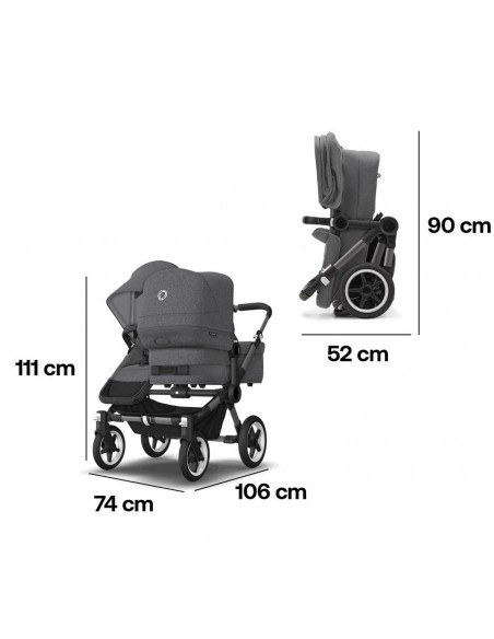 Meet the side-by-side double pushchair that brings siblings closer together. The Bugaboo Donkey 5 has a patented design that grows with your family in three clicks. It converts from a spacious single to a double designed to glide through standard doorways.