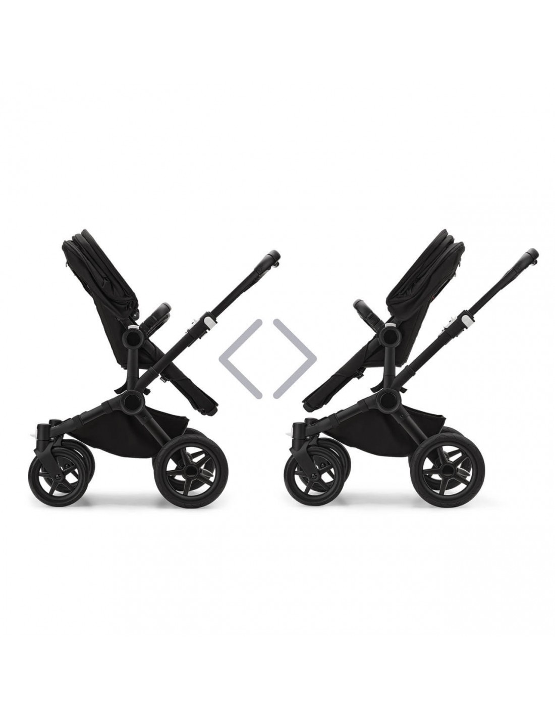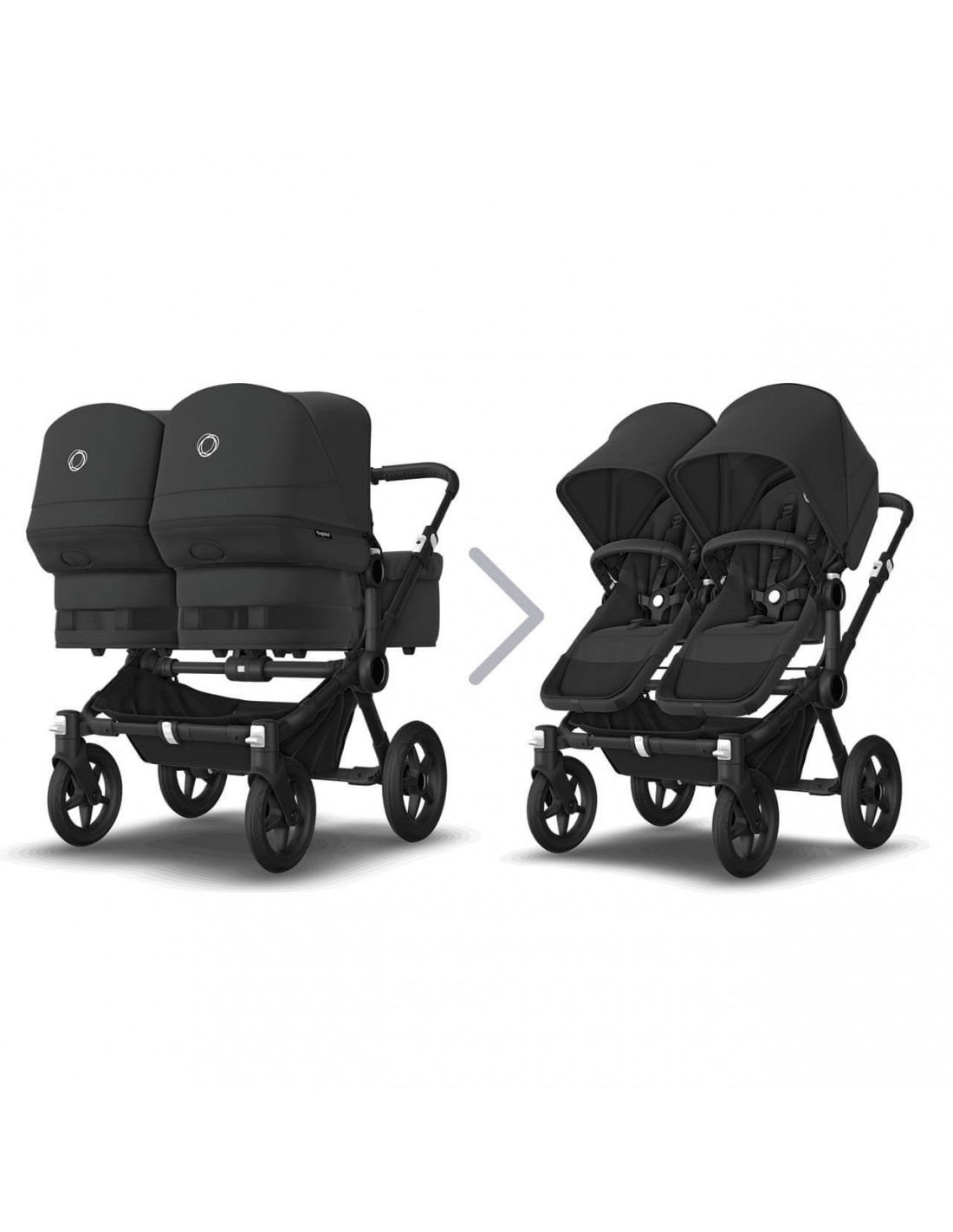 The configurations available for the Bugaboo Donkey 5 give you unrivaled flexibility. Stroll with a newborn and extra storage in Mono. Create a closer side-by-side connection, at the same height, for two babies in Twin or two siblings with an age gap in Duo.