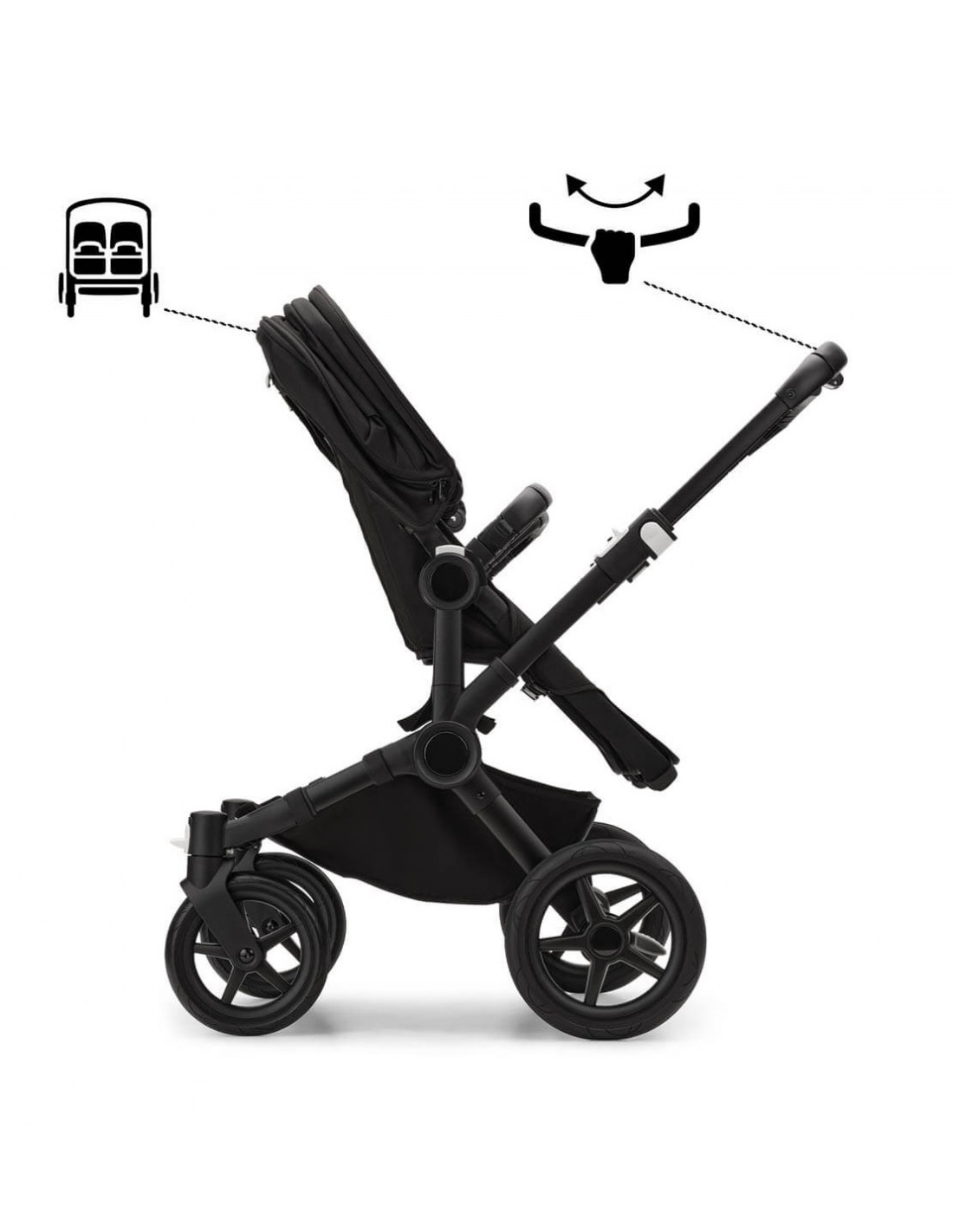 Let your children roam the world side by side, at the same height. The seats can be arranged to face you, face each other or face the path ahead.