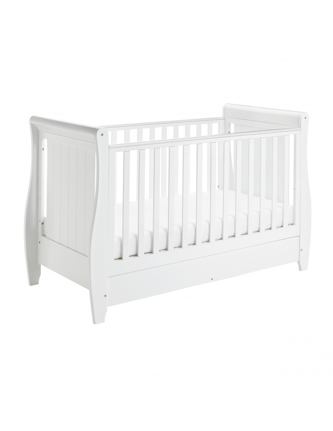 As a cot, the Stella looks stunning with its classic sleigh features, which incorporate both smooth curves and unique panel-styled ends. The Stella Cot Bed is beautifully crafted in solid pine and finished in a contemporary white painted finish. This cot bed is a stunning piece of furniture that will look great as a statement piece alongside any other furniture collection.