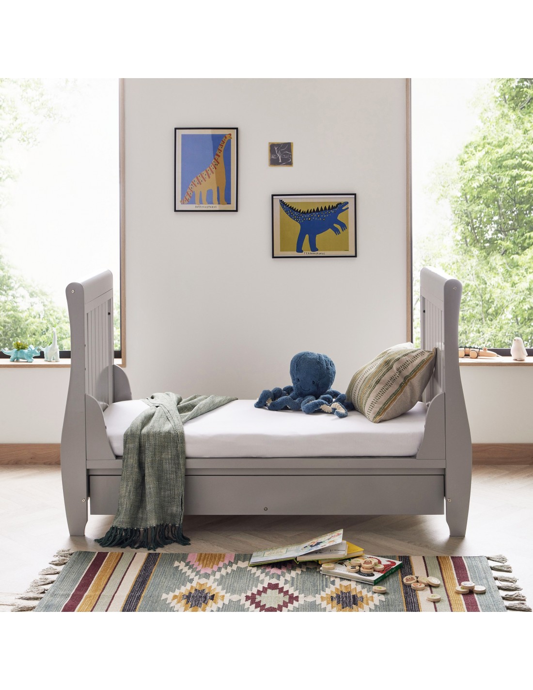 The Stella Drop-Side Cot Bed is a spacious option that will last your baby from newborn up until around the age of 5 years old. It starts its life as a Cot, but as your baby grows, you can easily convert it into a stylish toddler bed and finally a practical mini sofa, which makes an ideal storytime area for your little one.
