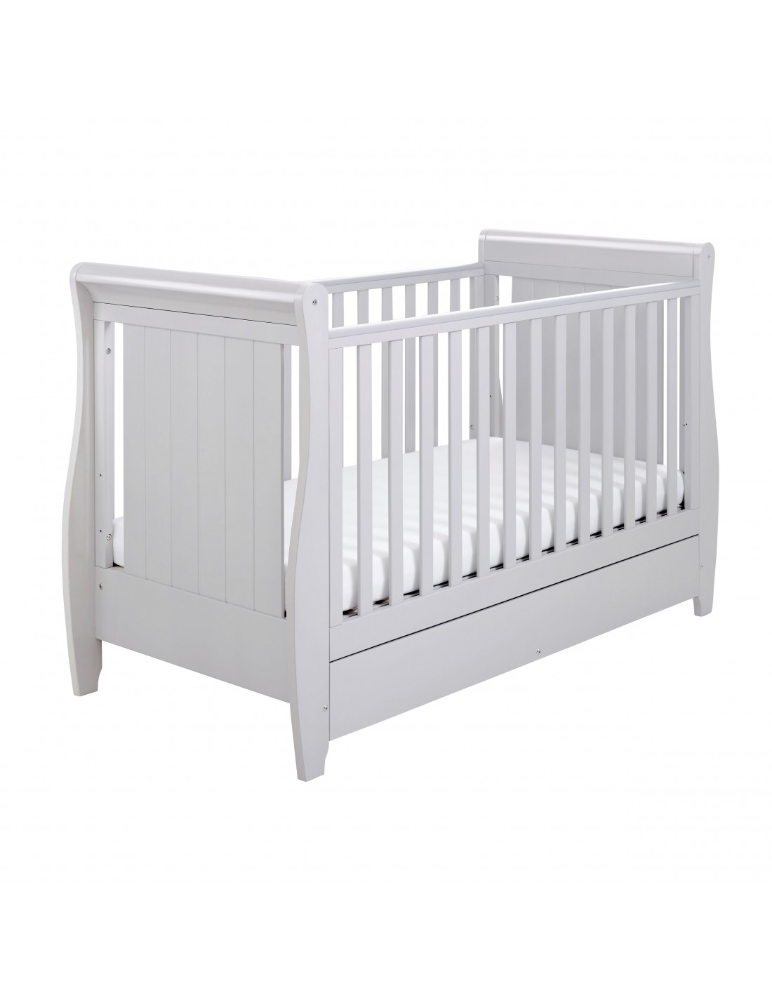As a cot, the Stella looks stunning with its classic sleigh features, which incorporate both smooth curves and unique panel-styled ends. The Stella Cot Bed is beautifully crafted in solid pine and finished in a contemporary white painted finish. This cot bed is a stunning piece of furniture that will look great as a statement piece alongside any other furniture collection.