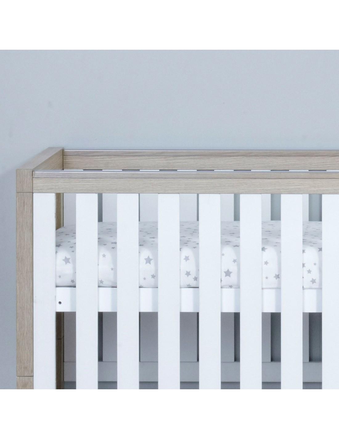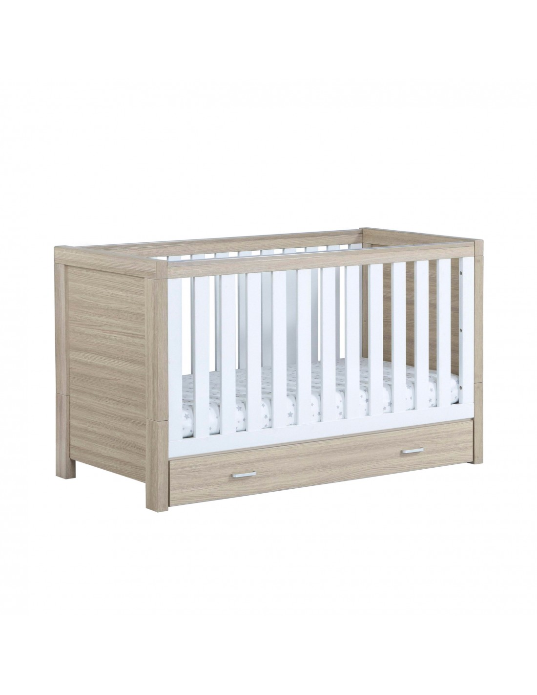 The Babymore Luno Cot Bed offers a modern and clean design. It is styled with clean lines and is designed to sit stylishly in any Nursery. The warm oak and white wood finish on the Luno Cot Bed allows it to fit naturally in both contemporary and more traditionally decorated rooms.