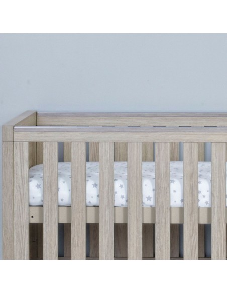 The Babymore Luno Cot Bed offers a modern and clean design. It is styled with clean lines and is designed to sit stylishly in any Nursery. The warm oak and white wood finish on the Luno Cot Bed allows it to fit naturally in both contemporary and more traditionally decorated rooms.