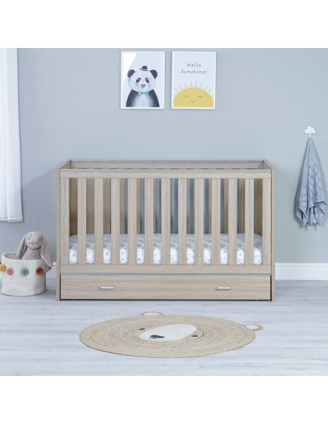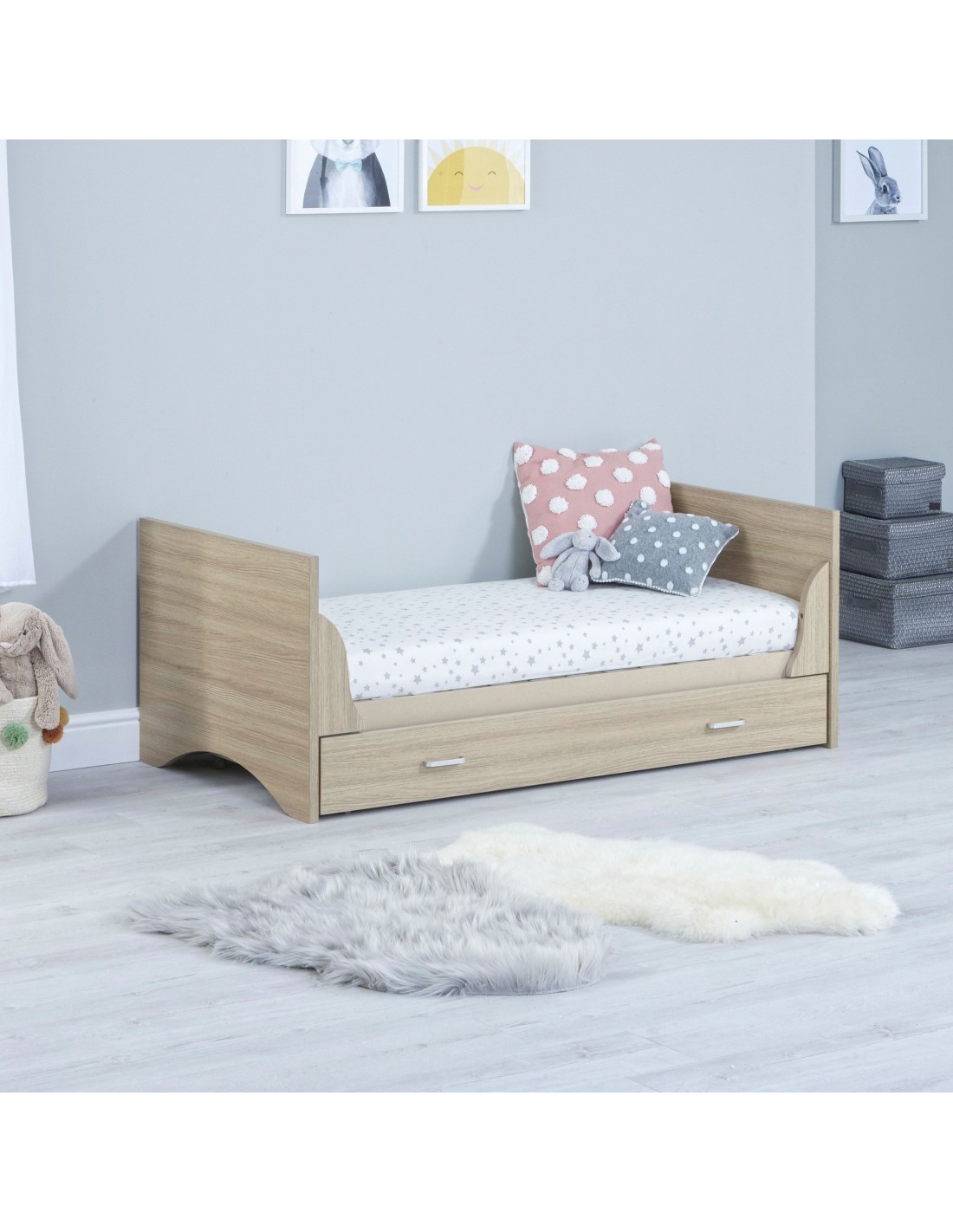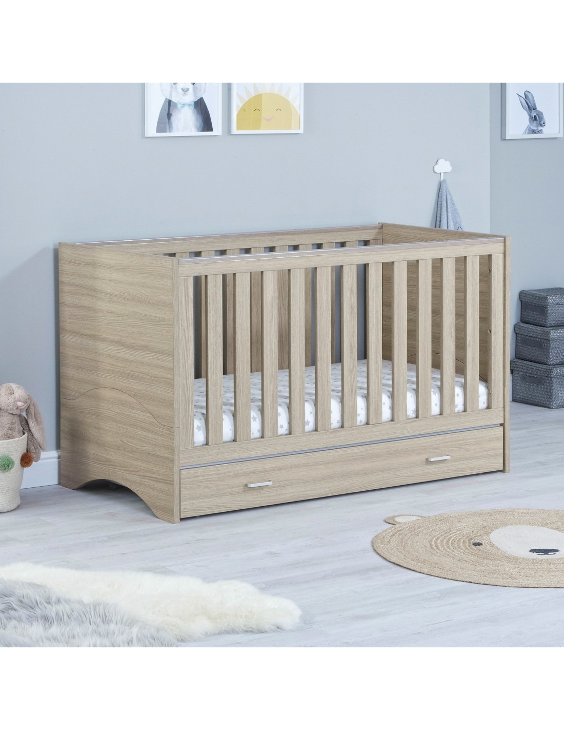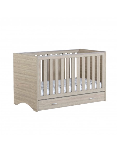 The Babymore Veni Cot Bed to Toddler Bed with Drawer gives you all the benefits of the Veni Cot Bed but with additional and very useful storage space! This Cot Bed has a very sleek appearance. It’s simple design makes it a chic addition to any Nursery. With its warm oak and white wood finish, the Veni Cot Bed is at home in either a modern or more traditional setting.