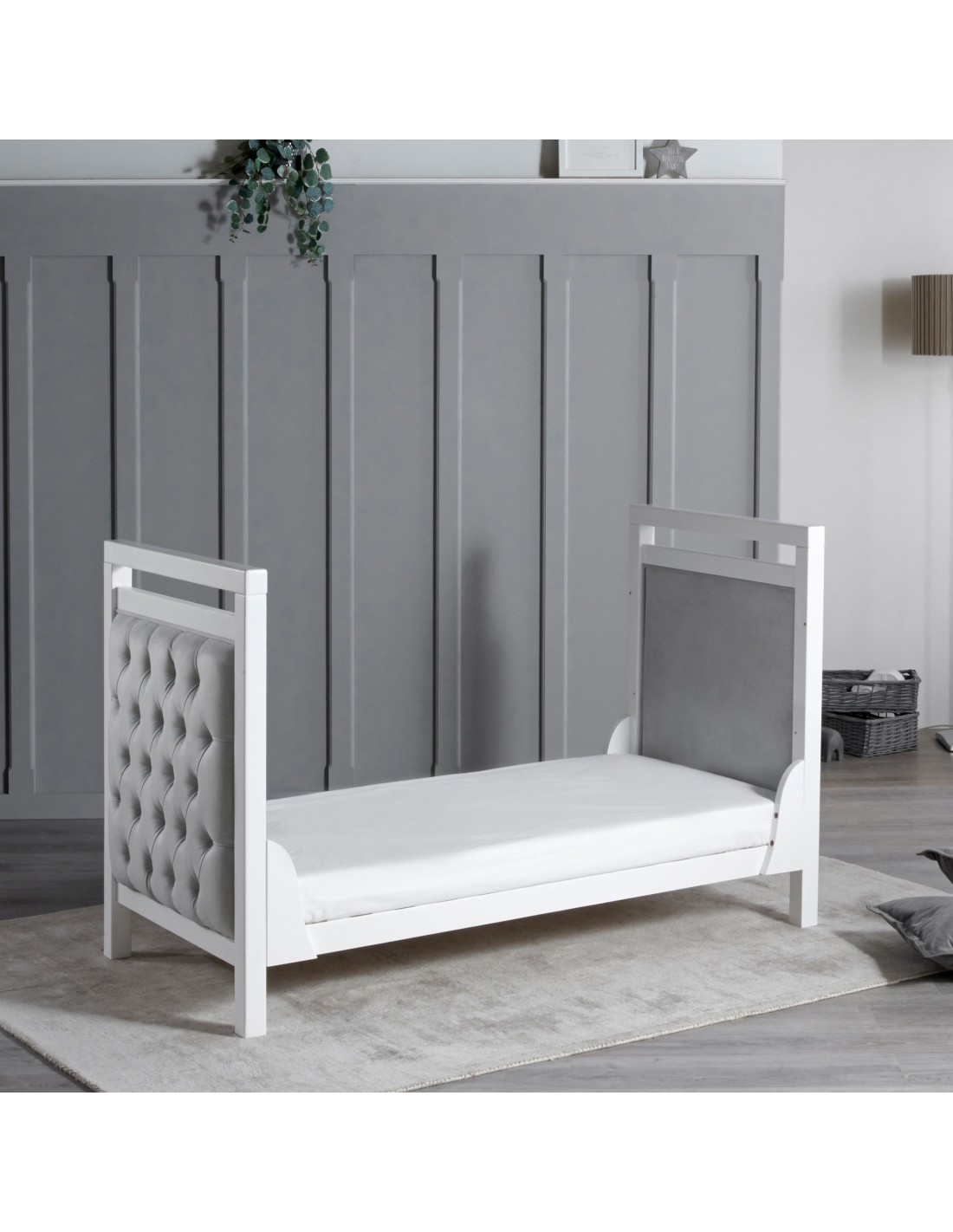The Velvet Deluxe cot to toddler bed is all about both cosiness and comfort for your baby. The headboard and footboard are deeply cushioned, giving an ideal place for your little one to sit up and relax once they get older.
