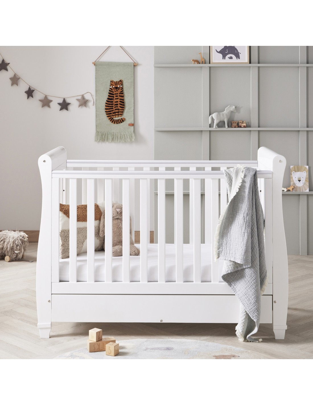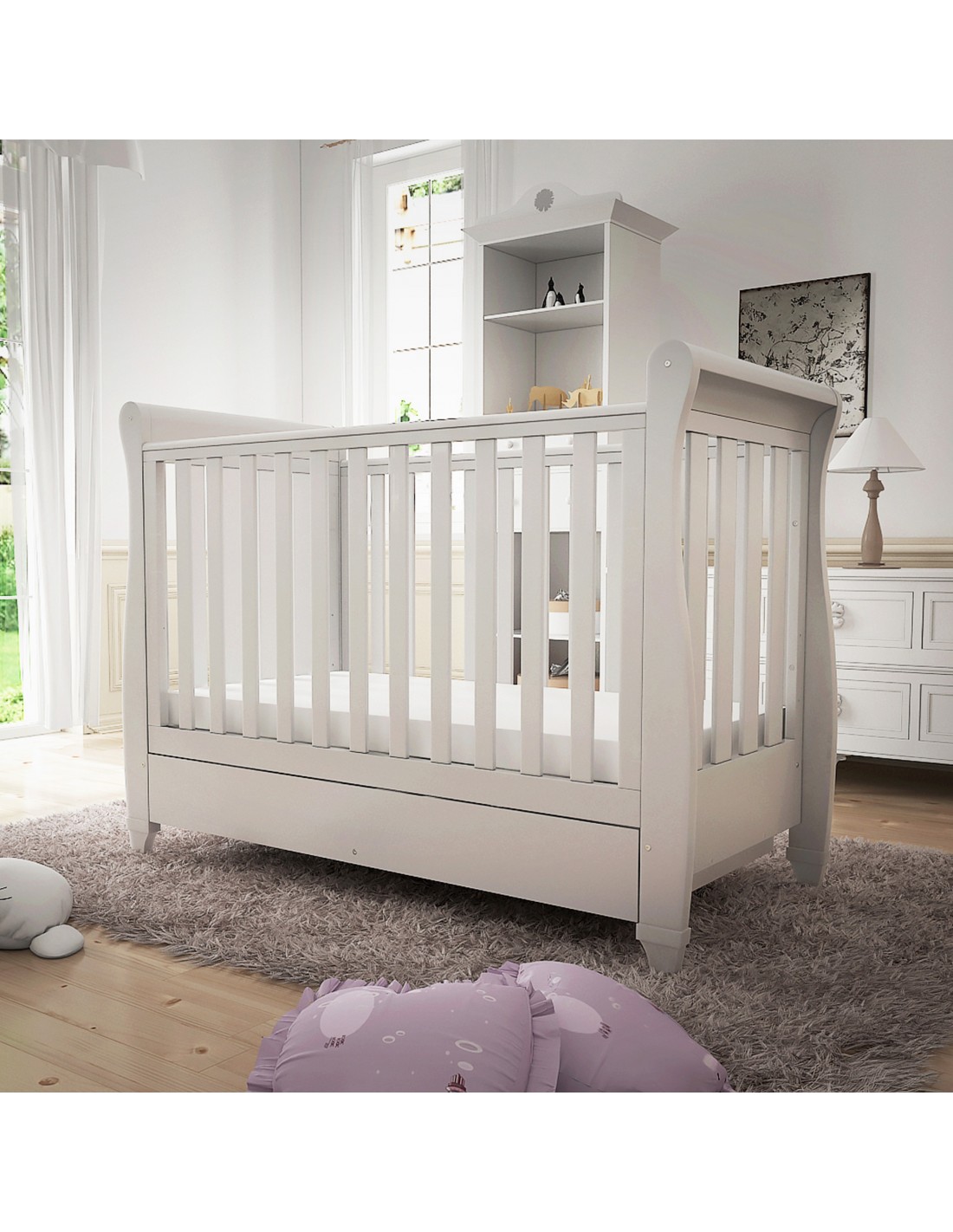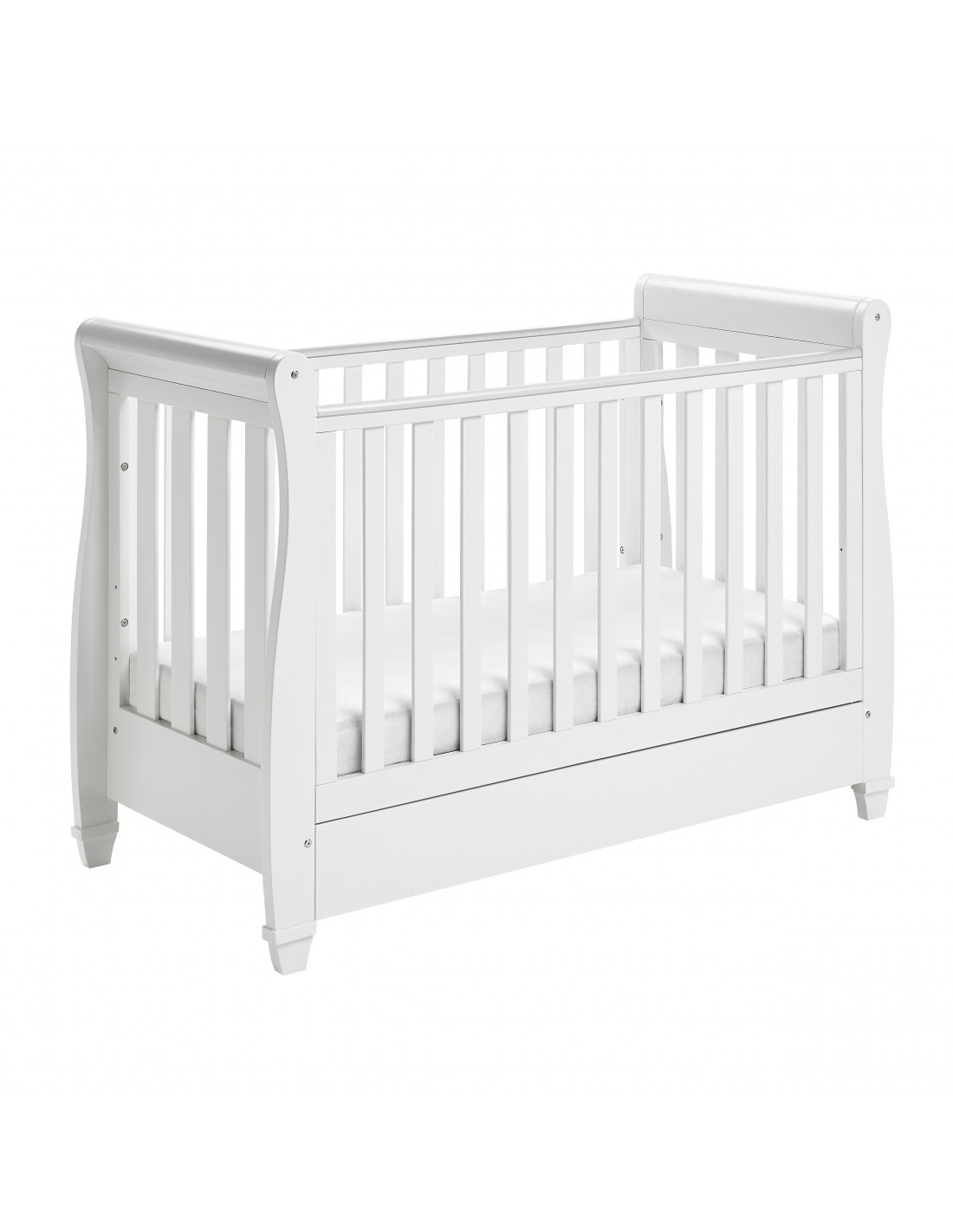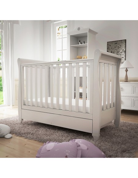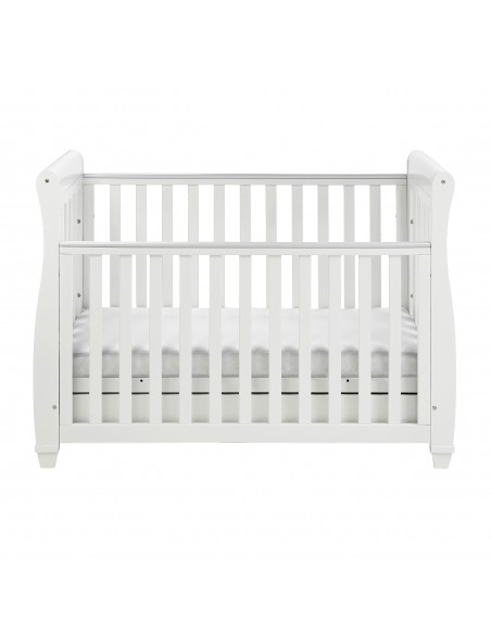 Three different mattress heights are available on the Eva Sleigh Cot Bed, making it the perfect sleeping environment for your growing baby. The Eva can be quickly transformed from a cot into a beautiful toddler bed once your little one is ready to graduate from the cot. But the Eva Sleigh’s usefulness doesn’t end when the baby reaches toddlerhood, as it can be turned into a sofa, which is great for parents to cuddle with their kids while reading them bedtime stories.
