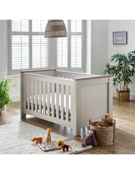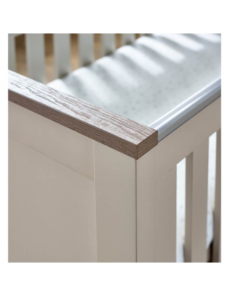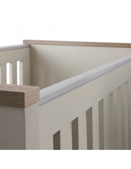 Part of the refined Charnwood-inspired Bordeaux collection, the Bordeaux Oatmeal Cot Bed exudes warmth and timeless appeal with its textured oatmeal finish and sleek matte aluminium handles. Created to support the first few years of your child's life, it starts as a cozy cot and easily transitions into a toddler bed. Comfort and safety are at the forefront, with an adjustable mattress base to ease tending newborns and removable teething rails to protect little adventurers. With its sturdy structure and smart design, this cot bed offers both peace of mind for parents and a charming spot for sweet dreams.