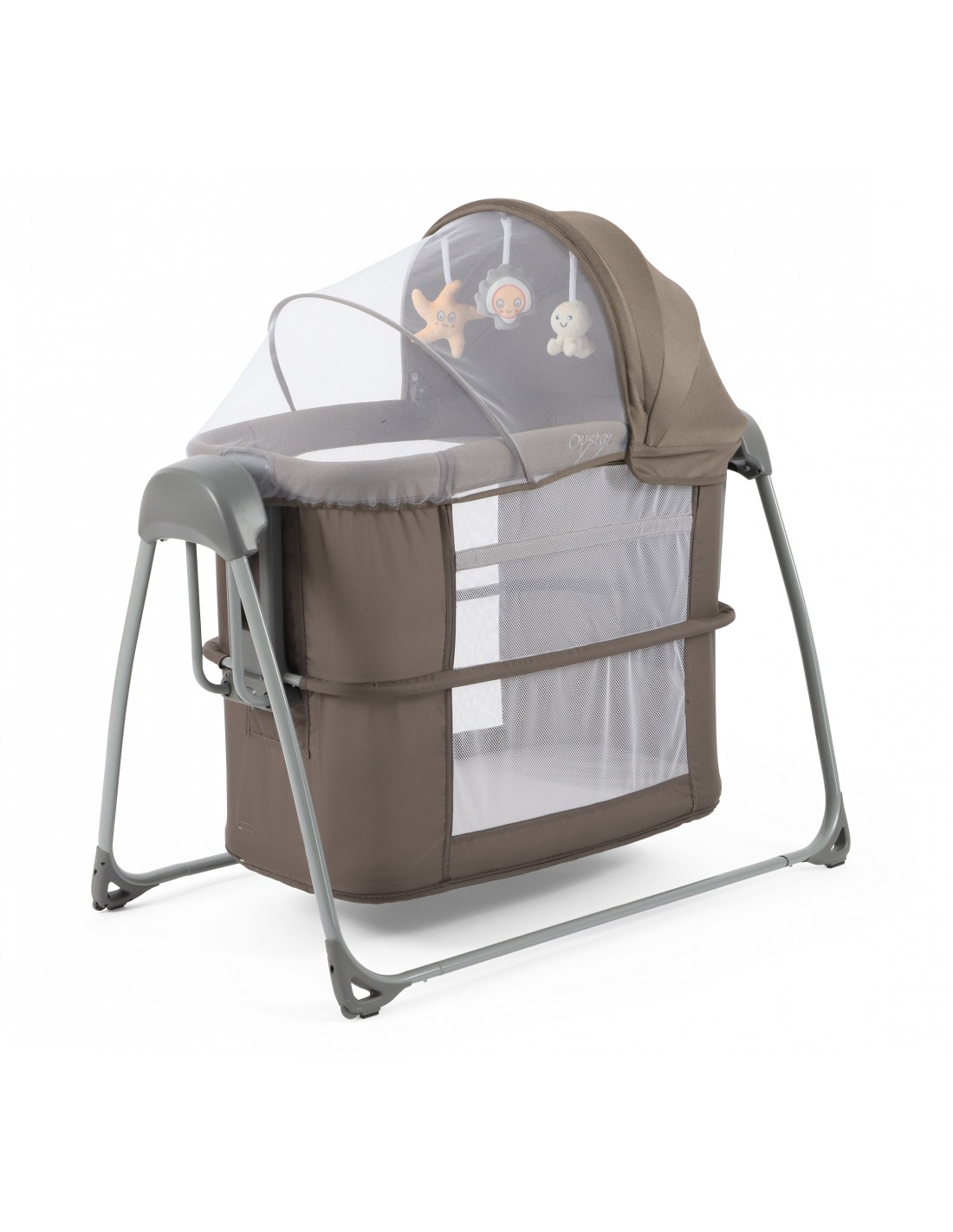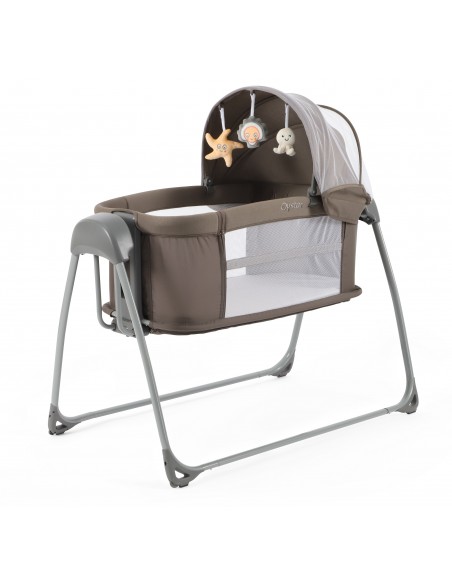The Oyster Swinging Crib includes three soft toys which are attached to the detachable canopy.