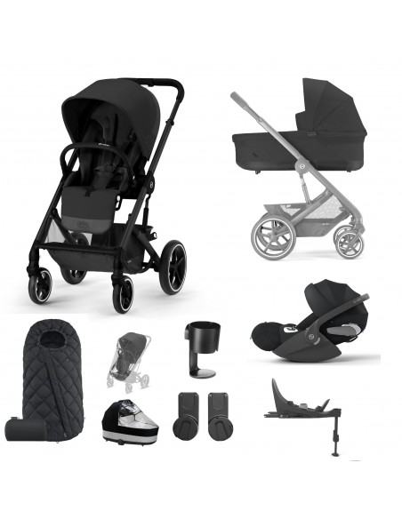Includes; frame including wheels, seat unit (hard parts and soft goods), shopping basket, bumper bar, sun canopy, pushchair raincover, carrycot with mattress, carrycot raincover, Cloud T car seat, Base T, Snogga footmuff, car seat adaptors & cup holder.
