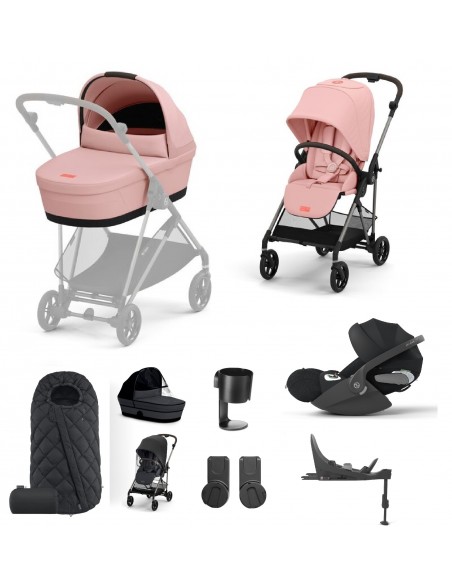 Includes; frame including wheels, seat unit (hard parts and soft goods), shopping basket, bumper bar, sun canopy, pushchair raincover, carrycot with mattress, carrycot raincover, Cloud T car seat, Base T, footmuff, car seat adaptors & cup holder.