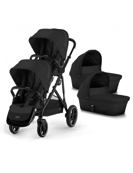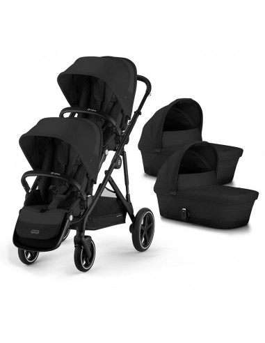 Cybex Gazelle Twin - Moon Black (chassis, x2 seat units & x2 carrycots)