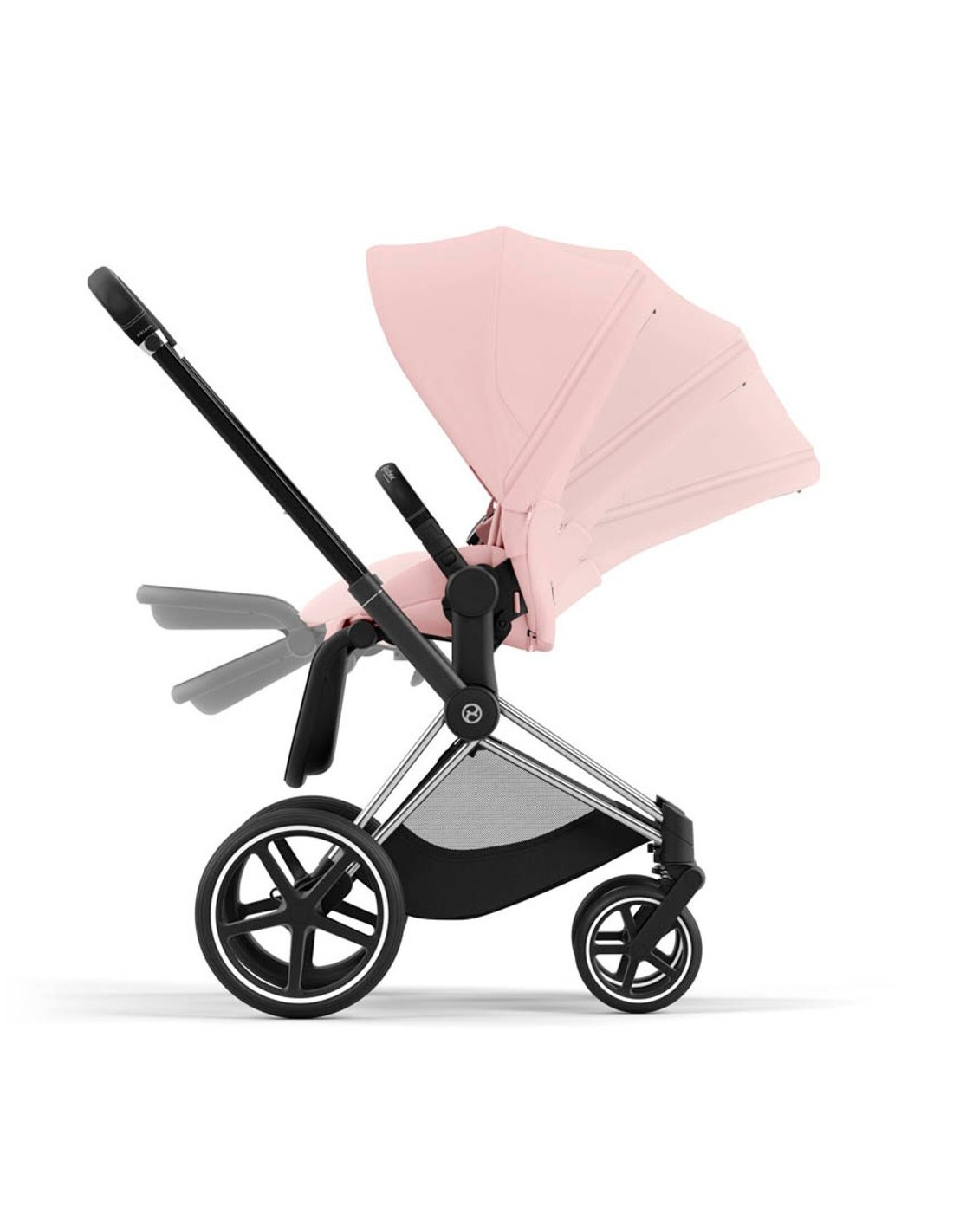 The CYBEX Priam features a spacious and easily accessible shopping basket that can be folded out when needed.