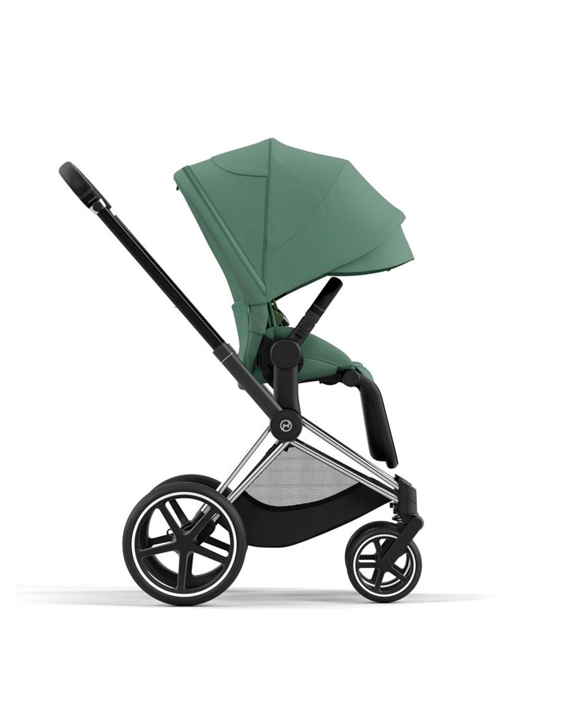 The CYBEX Priam features a spacious and easily accessible shopping basket that can be folded out when needed.