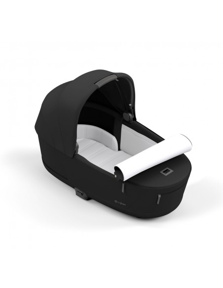 Elegantly protected: Choose the Priam Lux Carry Cot for maximum comfort from birth to six months old. Simply click the carry cot to the Priam or e-Priam frame with adapters and you’re ready to go.