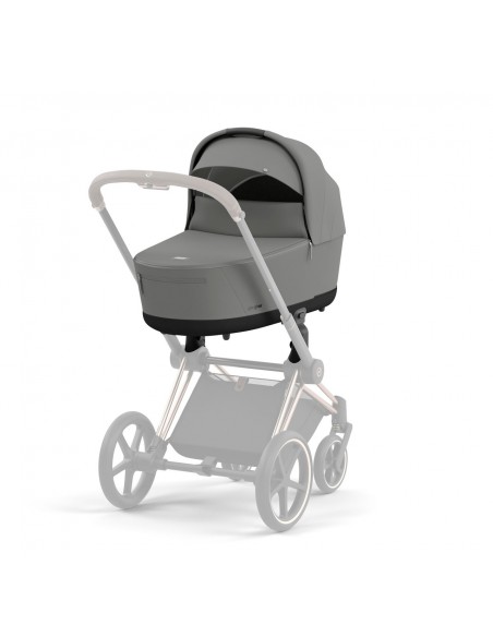 Elegantly protected: Choose the Priam Lux Carry Cot for maximum comfort from birth to six months old. Simply click the carry cot to the Priam or e-Priam frame with adapters and you’re ready to go.