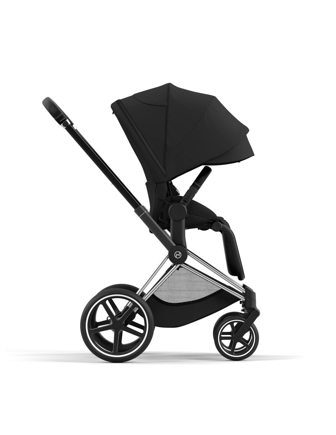 The CYBEX Priam features a spacious and easily accessible shopping basket that can be folded out when needed.
