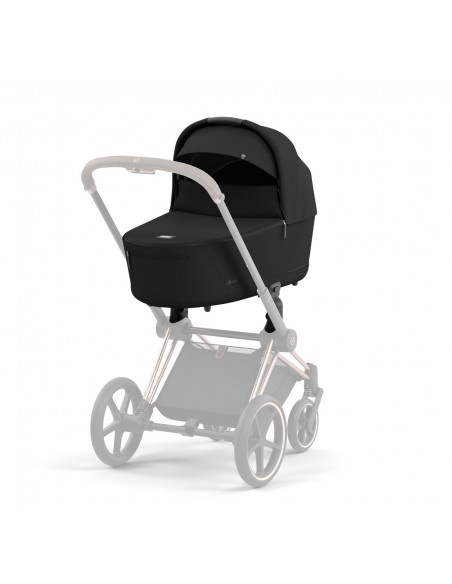 Elegantly protected: Choose the Priam Lux Carry Cot for maximum comfort from birth to six months old. Simply click the carry cot to the Priam or e-Priam frame with adapters and you’re ready to go.