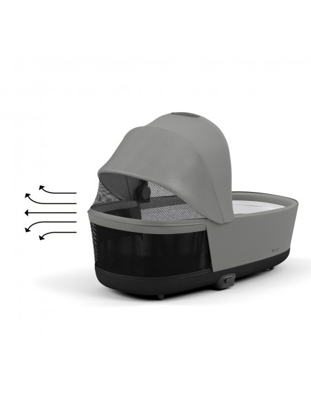 Elegantly protected: Choose the Priam Lux Carry Cot for maximum comfort from birth to six months old. Simply click the carry cot to the Priam or e-Priam frame with adapters and you’re ready to go.