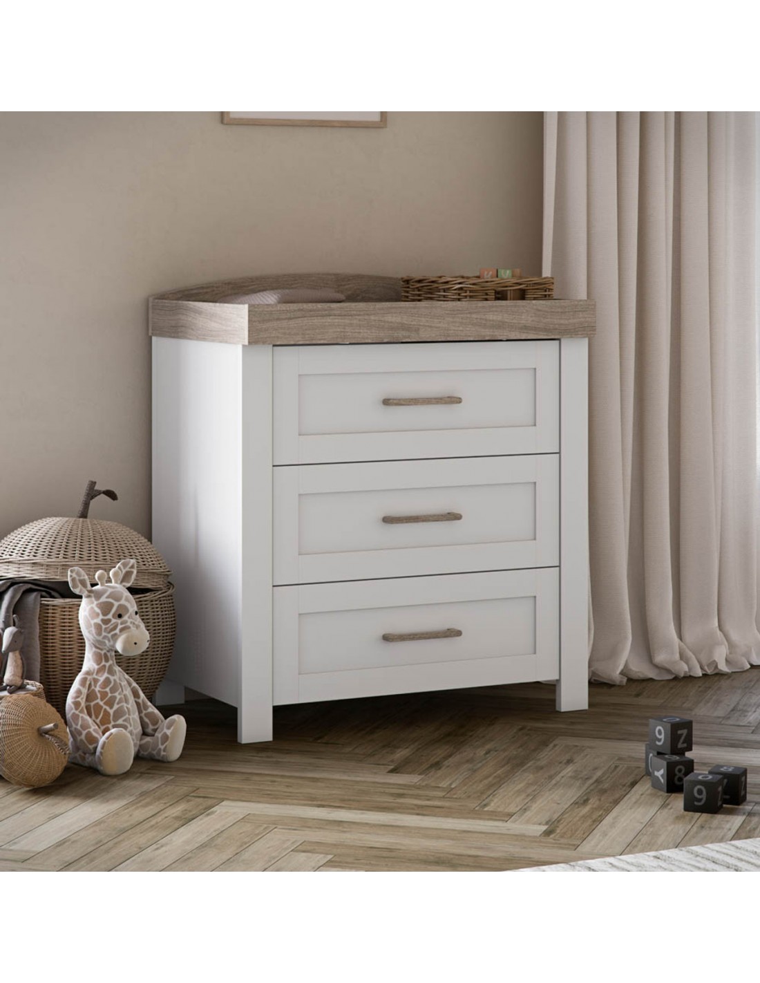 The dresser also doubles up as a changing table thanks to the integrated top which can be used for nappy changes or as an extra storage tray.