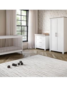 Valencia features a timeless white finish with natural ash accents, creating a fresh and calming environment for your baby.