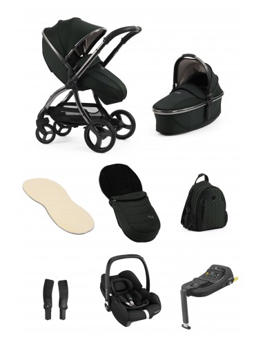 Includes; chassis, seat unit, raincover, insect net, apron, fleece liner, shopping basket, extendable canopy, carrycot with mattress, carrycot raincover, changing rucksack, footmuff, car seat adaptor, Maxi-Cosi CabrioFix iSize car seat & Maxi-Cosi CabrioFix iSize base.