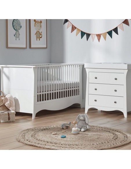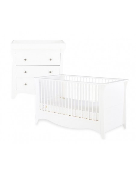 Complete your fairy tale with the Clara 2pc furniture set, including a cot bed and 3 drawer dresser & changer. It's classic curvature with a modern contemporary look, function and style to transform any nursery.