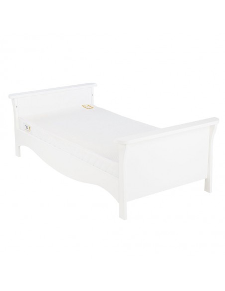 The Clara full-size cot bed is suitable from birth to about 5 years. Designed with 3 mattress positions, the Clara cot bed easily converts into a modern and stylish toddler bed for years of enjoyment.