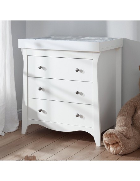 The Clara 3 drawer dresser & changer is designed to offer you style, storage and function with 3 spacious drawers and a removable changing station.