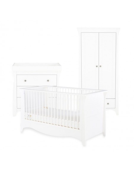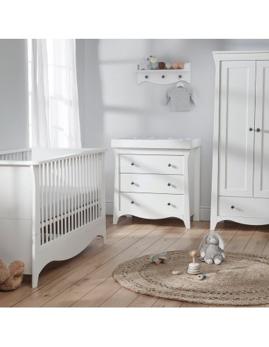 Complete your fairytale nursery with the Clara 3 Piece Baby Room Set. Comprising the Clara Cot Bed, Clara 2 Door Double Wardrobe and Clara 3 Drawer Dresser & Changer, it's classic curvature with a modern contemporary aesthetic and functional style will transform any nursery.