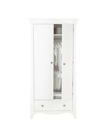 The Clara 2 Door Double Wardrobe is designed to help you successfully organize your nursery. Featuring two removable hanging rails to convert into a full-size wardrobe, a deep storage drawer and a handy shelving space, it’s classic styling will transform a modern nursery.