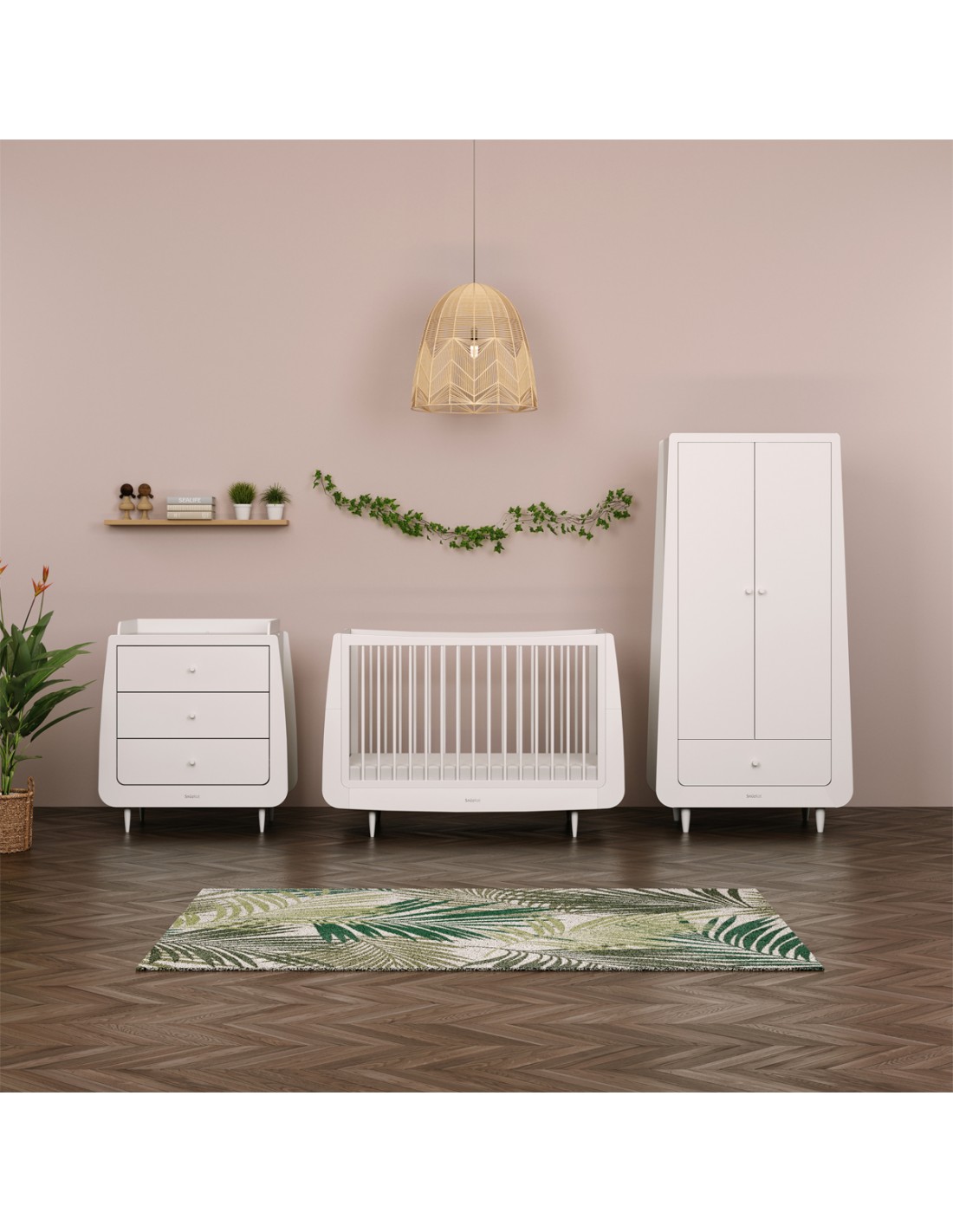 - Three-piece nursery furniture set includes Cot Bed, Changing Unit and Wardrobe