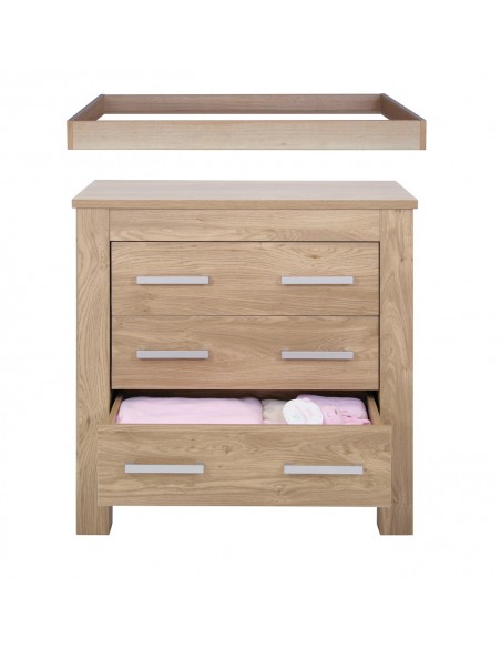 Three spacious soft-close drawers with a flat surface. Also features a removable changer top panel.