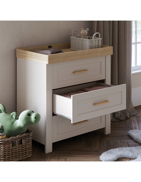 Keep your little one’s belongings organised in Seville’s spacious three-drawer dresser, with plenty of room for clothing and bedding.