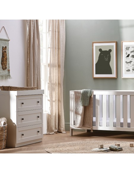 A stylish addition that fits seamlessly into any home, the Silver Cross Bromley nursery furniture collection is timeless and elegant. Providing the perfect canvas for creating your little one’s dream nursery, Bromley features a soft white finish with contrasting cast pewter handles.